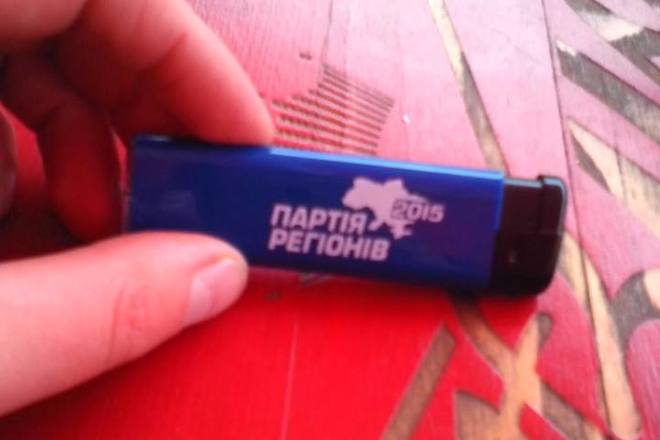 У Черкасах продають запальнички, на яких плівкою заклеєна реклама Партії регіонів.