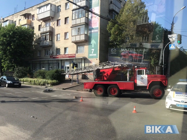 У середмісті Черкас зіткнулись автобус та пожежний автомобіль.