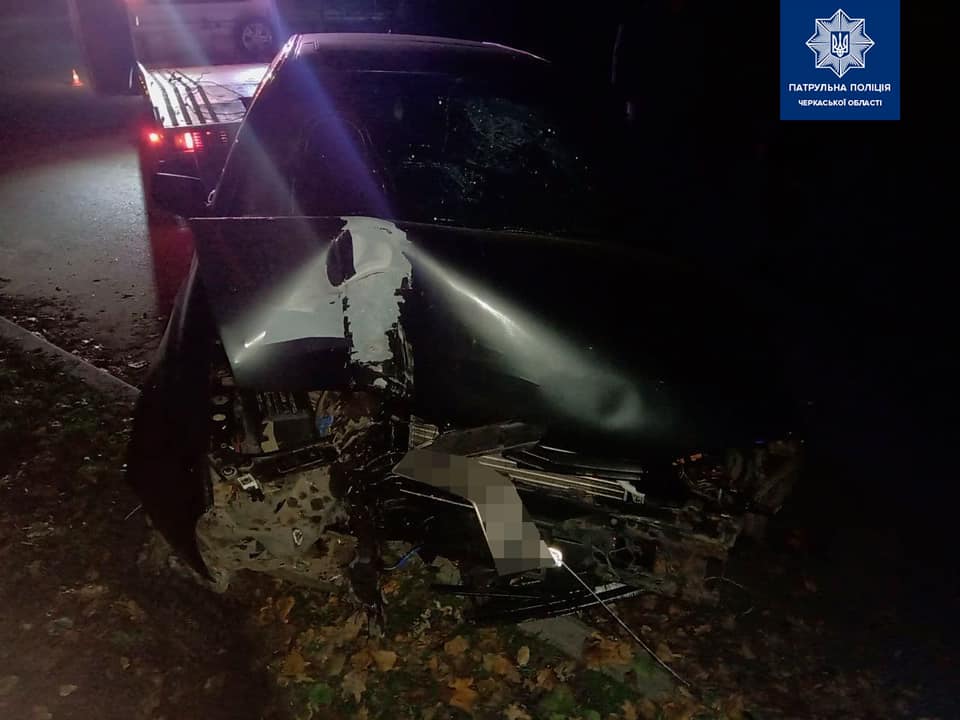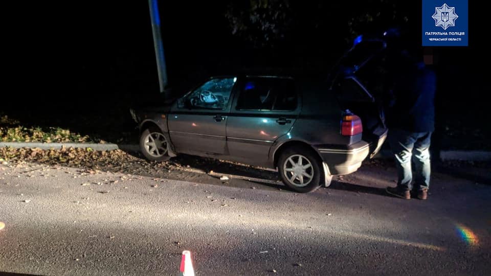 У Черкасах водій автомобіля Volkswagen Golf не дотримався безпечної швидкості, не впорався з керуванням та скоїв наїзд на перешкоду, а саме – бордюрний камінь та світлову електроопору.