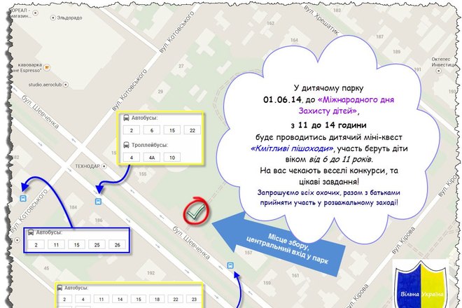 Замість нього, було вирішено провести Дитячий міні-квест "Кмітливі пішоходи", який зараз має відбуватися у дитячому парку.
