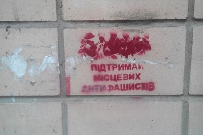 Один із них – "Підтримай місцевих антифашистів" – сьогодні зранку зафіксували місцеві жителі.