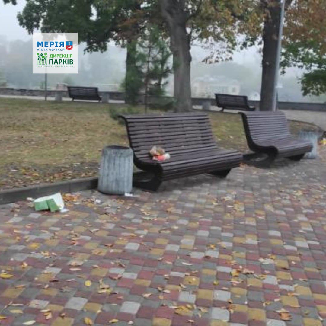 11 жовтня комунальники виявили безлад у парку Богдана Хмельницького: розкидане сміття та скинуті зі схилу бетонні урни. Про це повідомили на фейсбук-сторінці КП “Дирекція парків”.