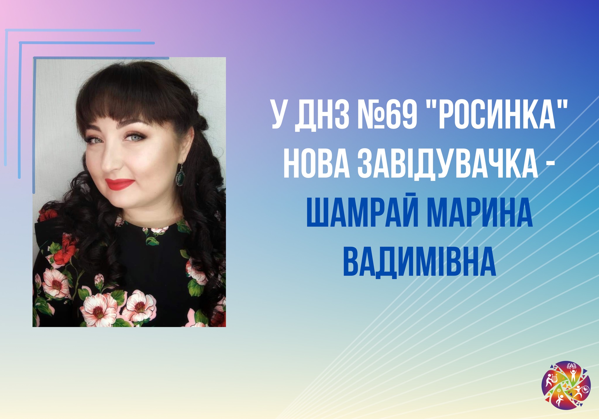 Відповідно до наказу департаменту освіти та гуманітарної політики, новою завідувачкою дошкільного навчального закладу № 69 «Росинка» призначено Шамрай Марину Вадимівну.