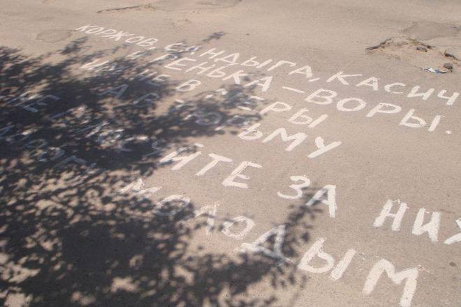 У Каневі на виборах 25 травня не обійшлося без чорного піару. Напередодні дня голосування на асфальті дороги за 100 метрів від входу до виборчої дільниці № 710900, яка розташована в приміщенні школи № 3, білою фарбою зробили образливий напис на кандидатів на посаду канівського голови.