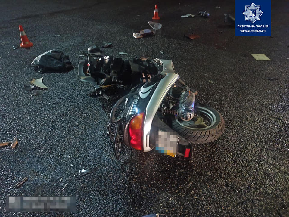 Зіткнулись авто Renаult та скутер, інформує пресслужба УПП у Черкаській області.