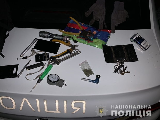 "У затриманого виявлено спеціальний інструмент для злому та відкриття приміщень, а також поліетиленовий пакет із сухим канабісом",– розповідає сержант поліції Владислав Кисіль.