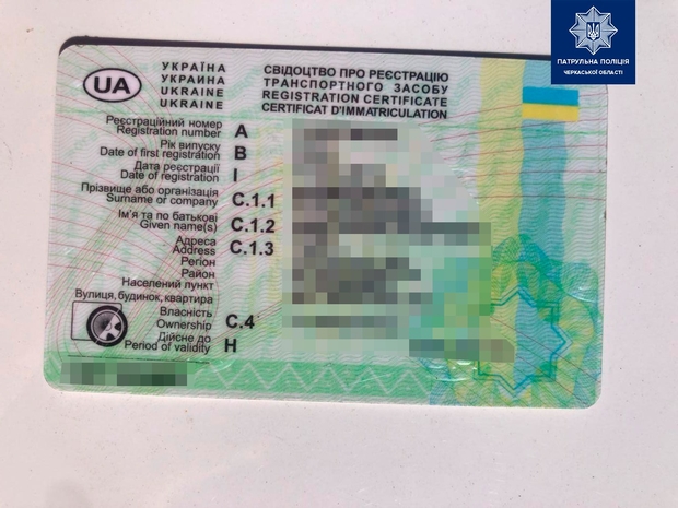 В ході перевірки документів інспектори встановили, що свідоцтво про реєстрацію транспортного засобу має явні ознаки підробки, а даний автомобіль не зареєстрований у встановленому законом порядку, інформує пресслужба УПП у Черкаській області.