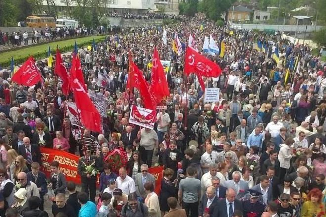 Черкаська обласна міліція нарахувала близько 20 тисяч громадян на ході до Пагорба Слави під час відзначення 69-річниці перемоги у Великій Вітчизняній війні.