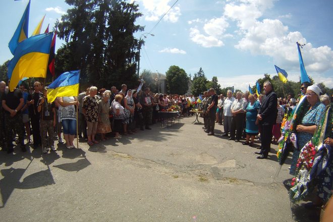 На центральну площу попрощатися із Валентином Черутою зібралися представники влади, бійці "Айдару" та громадськість.