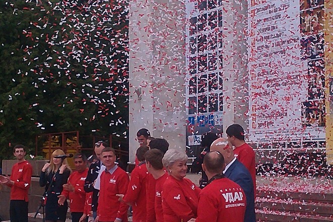 Конфеті, вогняні факели, партійні прапори і невелика кількість людей. Саме таким було публічне представлення команди "УДАРу", пише видання "Кропива".