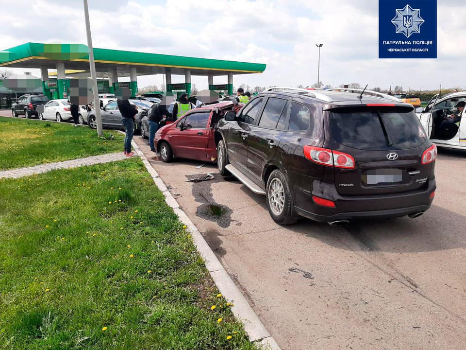 За інформацією правоохоронців, водійка автомобіля «Hyundai Santa Fe» не впоралася з керуванням та на швидкості врізалася в машини «Daewoo Matiz», «Honda Accord», «Mazda 3», «Toyota Auris» та «Volkswagen Passat CC», що стояли попереду на автозаправці.