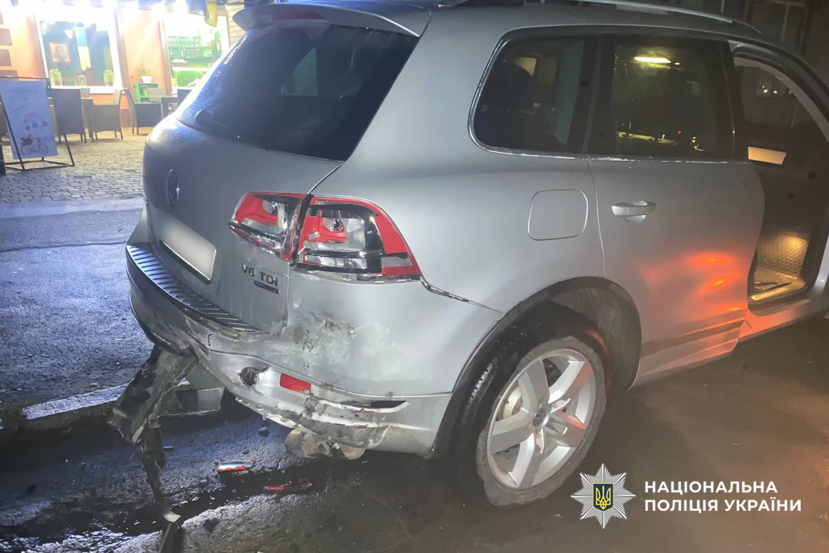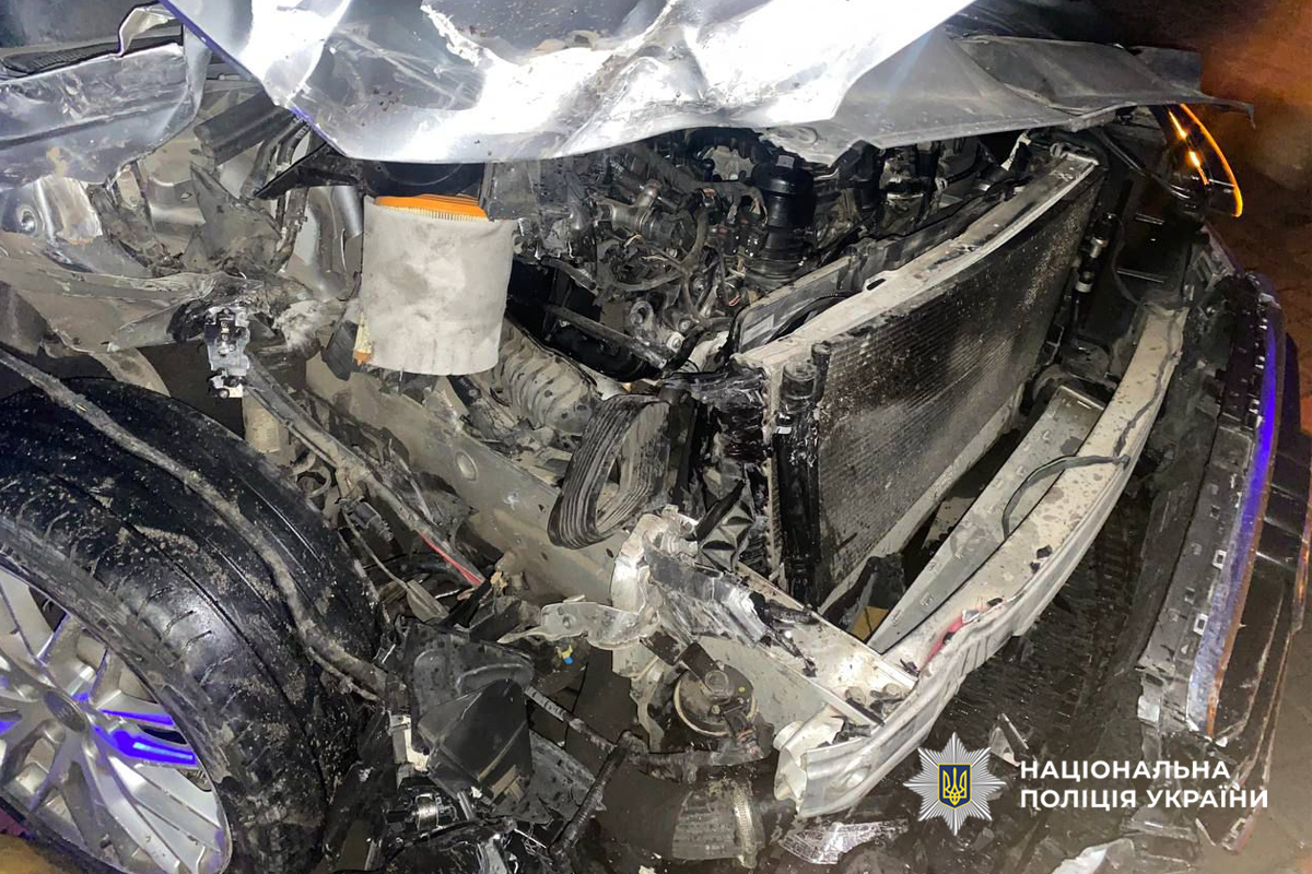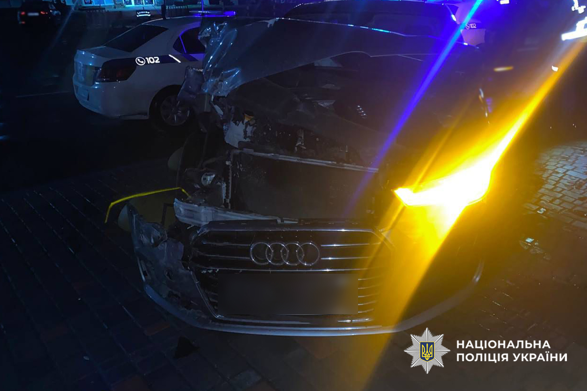 Аварія сталася на вулиці Київській у суботу, близько 22:00. За попередніми даними, керманич автомобіля Audi не впорався з керуванням та в’їхав у два припарковані транспортні засоби. Після цього авто виїхало на зустрічну смугу та зупинилося на пішохідному тротуарі.