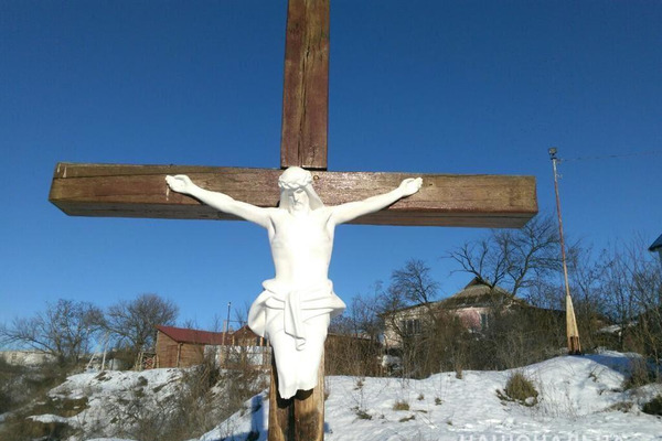 В Умані на березі місцевого ставка невідомі понівечили гіпсове розп’яття Ісуса Христа. Про це повідомляє прес-служба ГУНП в Черкаській області.