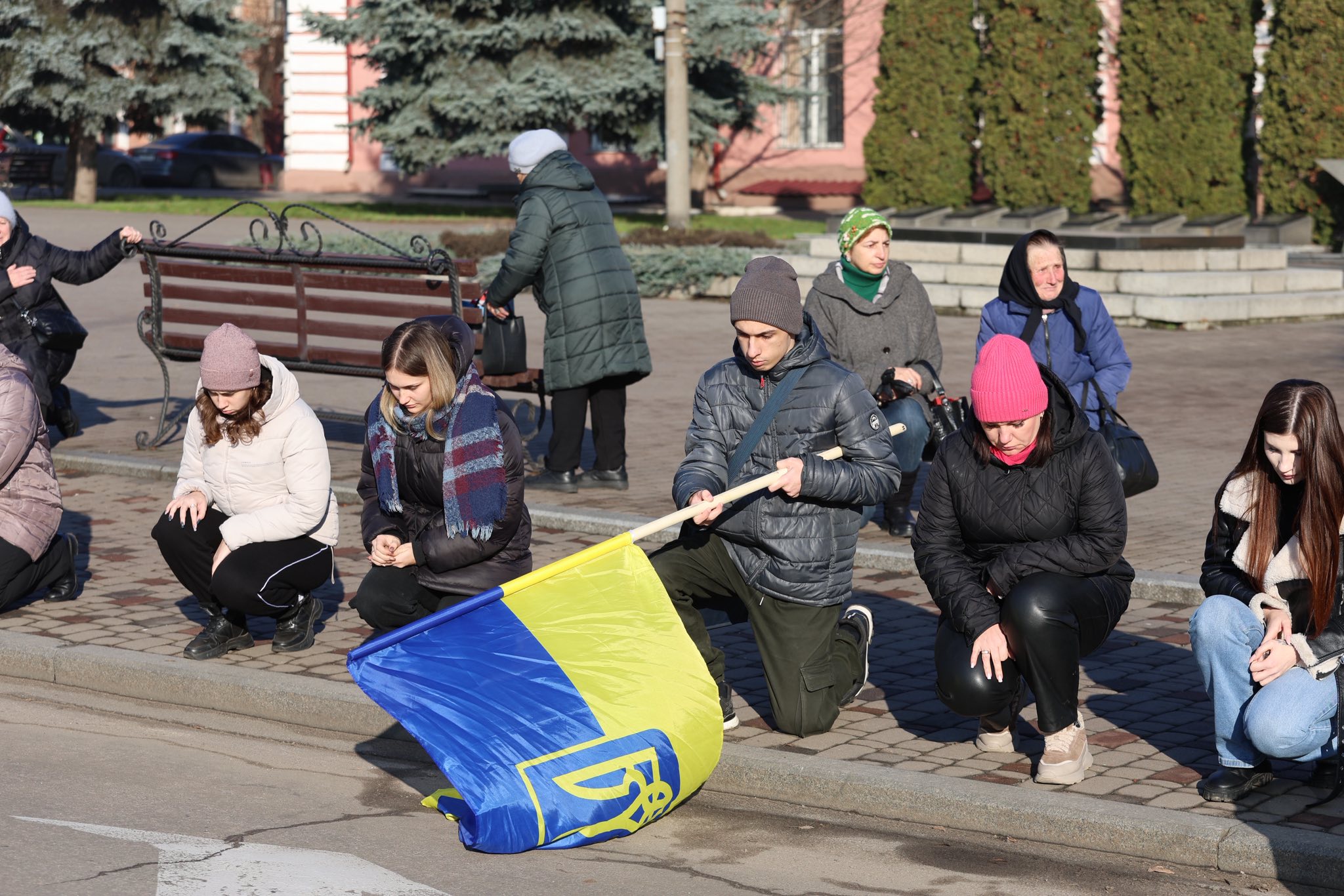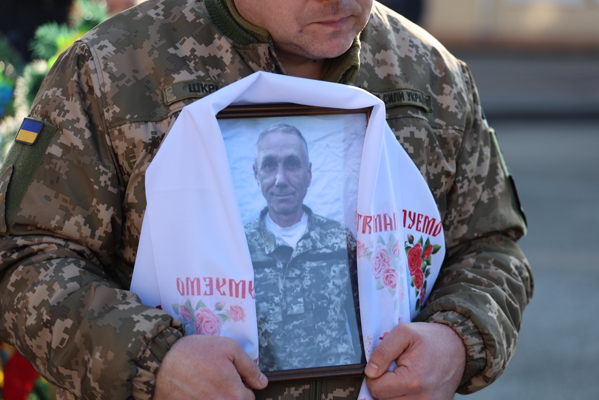 Мешканці громади, побратими та представники влади зібралися утворили «живий коридор» біля Обеліска Слави люди на знак глибокої поваги, вдячності та скорботи.