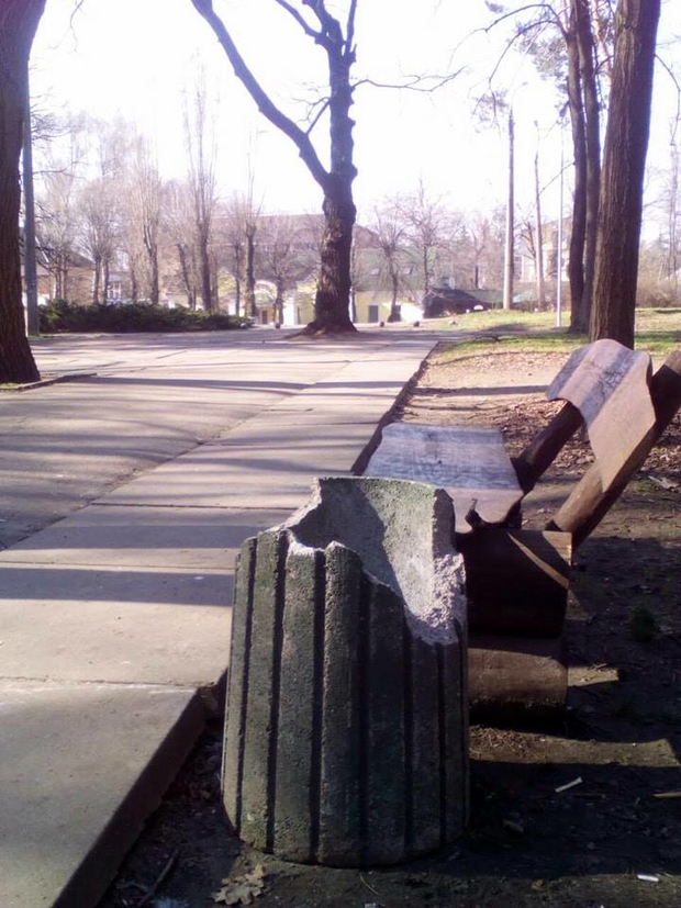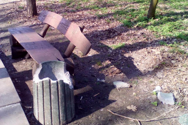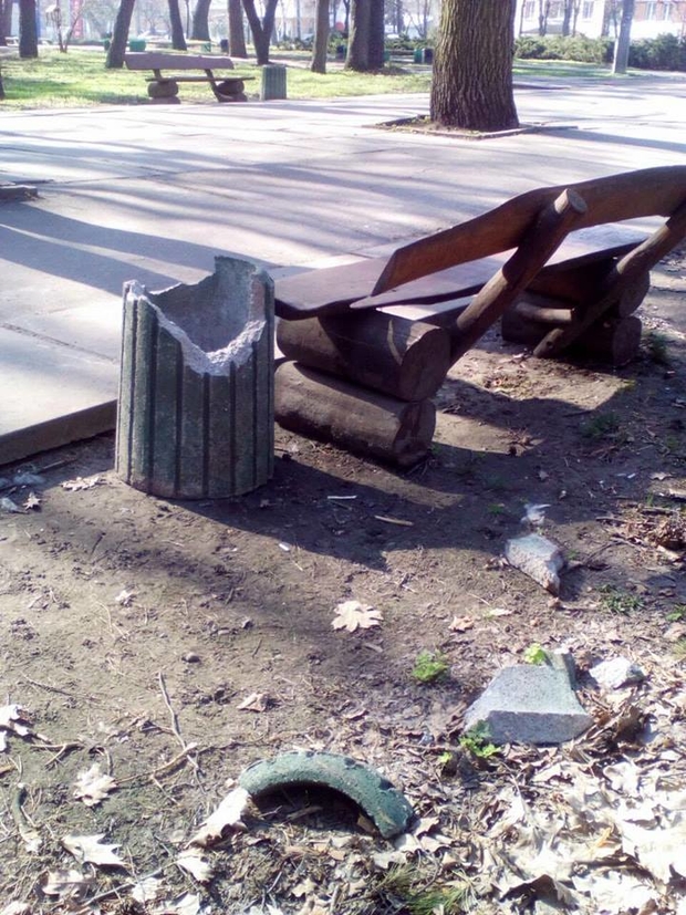 У Черкасах на центральній алеї парку "Сосновий бір" невідомі розтрощили урну для сміття. Про це на сторінці у Facebook повідомляє прес-служба КП "Дирекція парків".