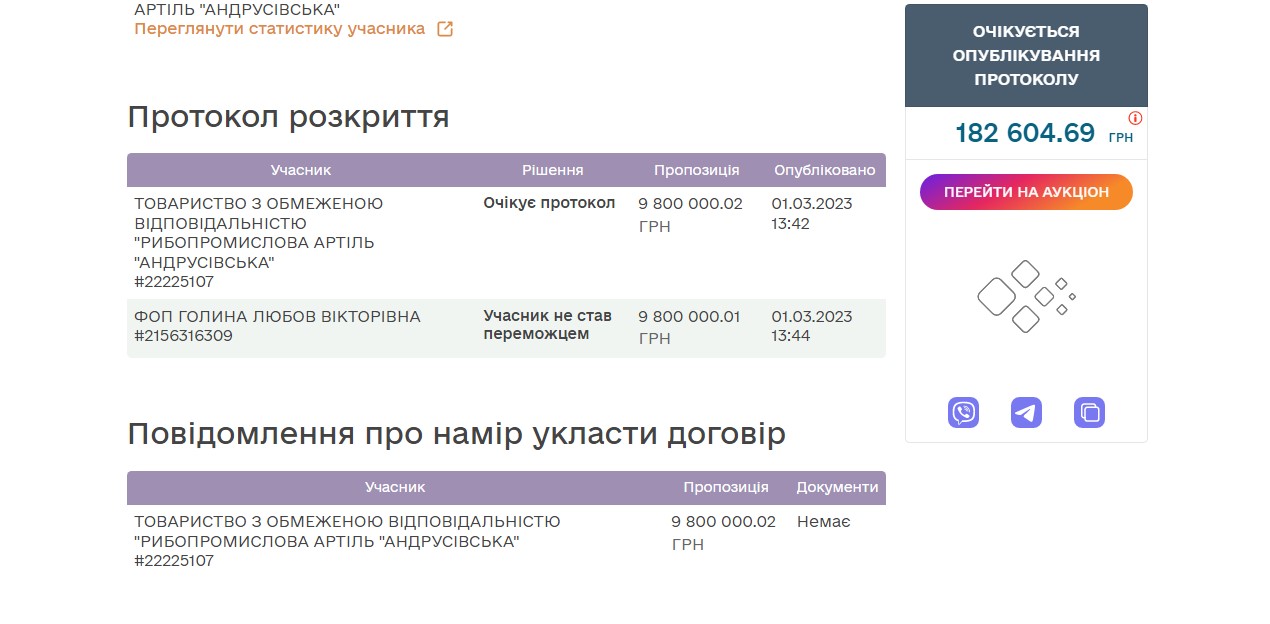 - Ми дивилися результати. Є наприклад, лот, стартова ціна в умовах зазначено, що переможець може виловити, приміром, 64 тонни риби. Хто контролюватиме?