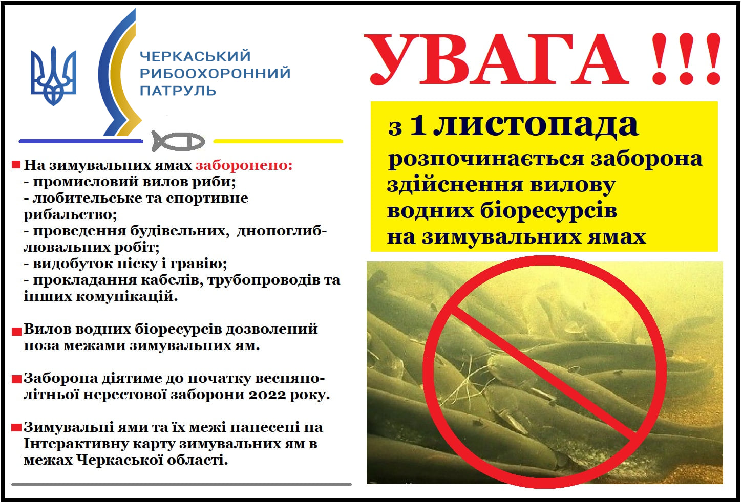 Черкаський рибоохоронний патруль оприлюднив місця, де заборонено виловлювати рибу. Таким місць на Кременчуцькому водосховищі – чотири. Їх ще називають зимувальними ямами, повідомляє пресслужба рибоохоронного патруля.