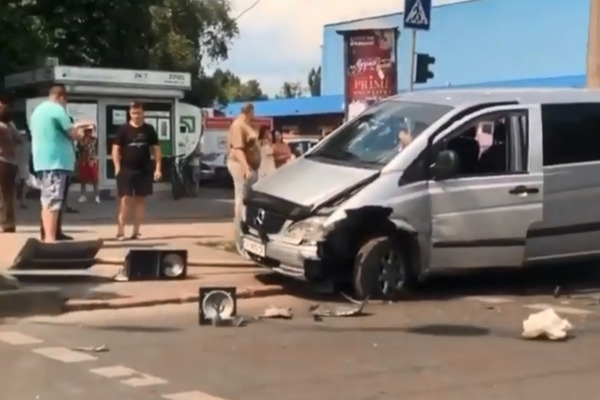 Як інформує у соцмережі очевидець, водій автівки "Volkswagen Polo" під час повороту наліво не пропустив автомобіль "Mercedes Benz Vito", який зніс знак "Пішохідний перехід". Ним ударило пенсіонерку, яка стояла на переході.