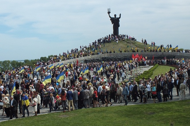 Також уже почалося вишиковування колони, яка рушить покладати квіти по Пагорба Слави.