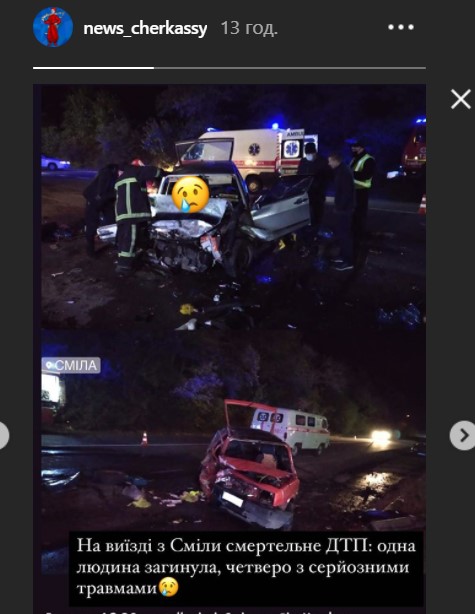 Учора, 23 жовтня, близько 18:30 вечора на виїзді зі Сміли зіштовхнулися два легкових автомобілі. В результаті зіткнення одна людина загинула, ще четверо отримали травми різного ступеню тяжкості.
