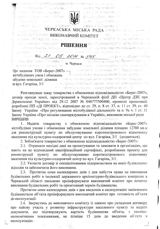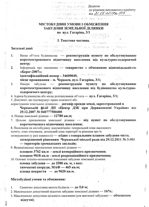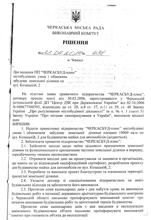 За словами начальника управління планування та архітектури департаменту архітектури, містобудування та інспектування Черкаської міської ради Віталія Чернухи, чий підпис стоїть на містобудівних умовах, ці будівлі передбачені Генеральним планом забудови міста.