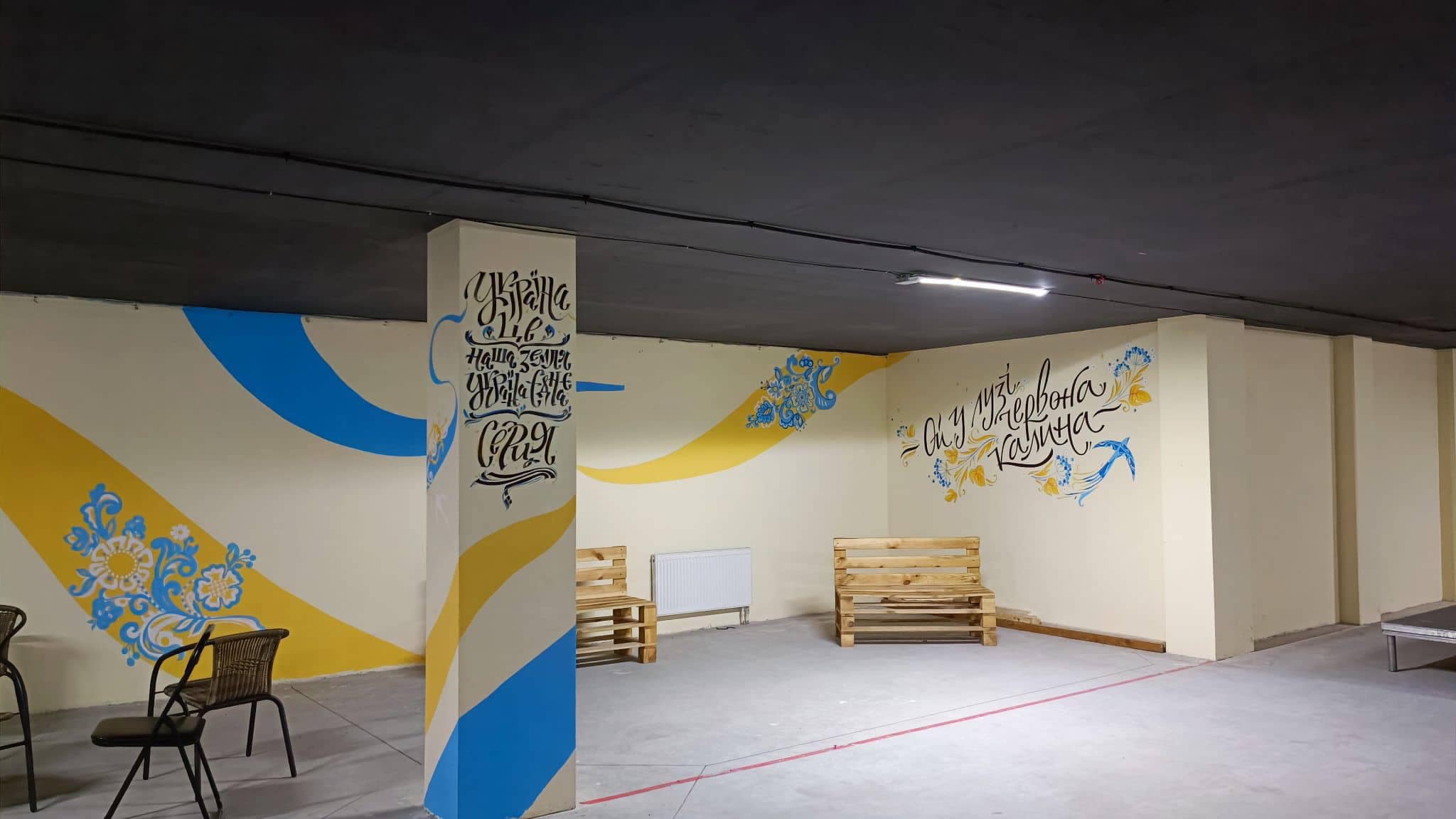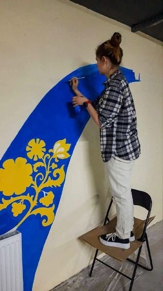 Завдяки нашим мисткиням: викладачці Черкаської дитчої школи мистецтв №2 Ользі Курській, викладачці Черкаської дитячої художньої школи імені Данила Нарбута Галушці Ользі та випускниці цієї школи Анастасії Мусатенко сірі стіни у бомбосховищі перетворились на яскраві патріотичні малюнки.