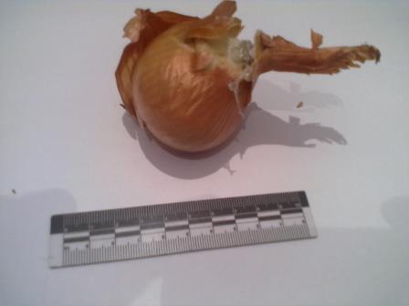 Під час огляду цибулини працівники знайшли поліетиленовий згорток із шматком бинта просякнутого рідиною темно-коричневого кольору із запахом ацетону.