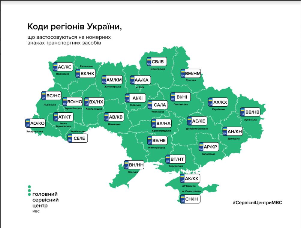 Згідно з наказом Міністерства внутрішніх справ України від 2 березня 2021 року, кожний сервісний центр МВС видаватиме номерні знаки лише своєї області, незалежно від місця прописки власника. Нові вимоги не поширюються на номерні знаки, які громадяни залишили на платному зберіганні в сервісному центрі МВС.