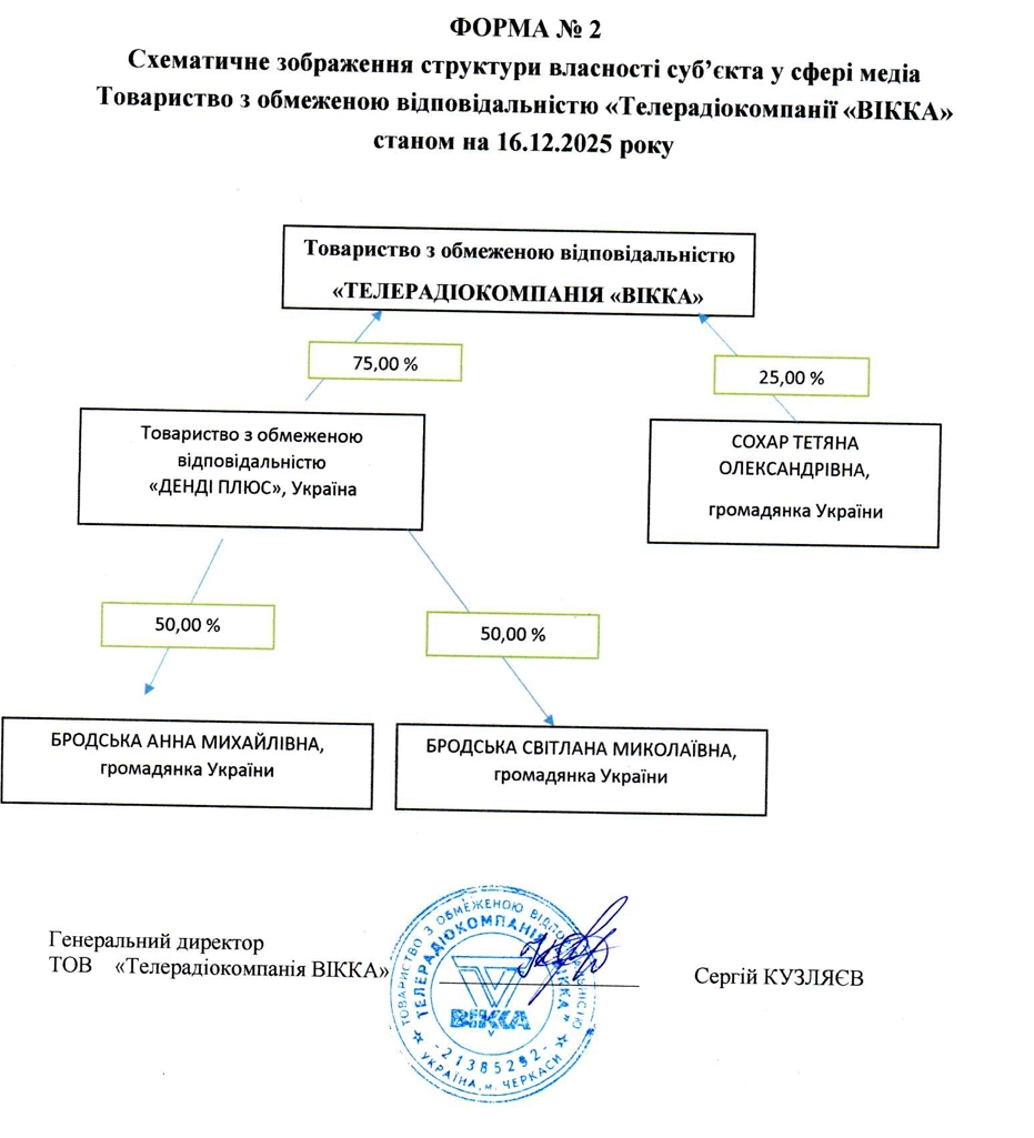 Схематичне зображення структури власності ТОВ “Телекомпанія ВІККА”