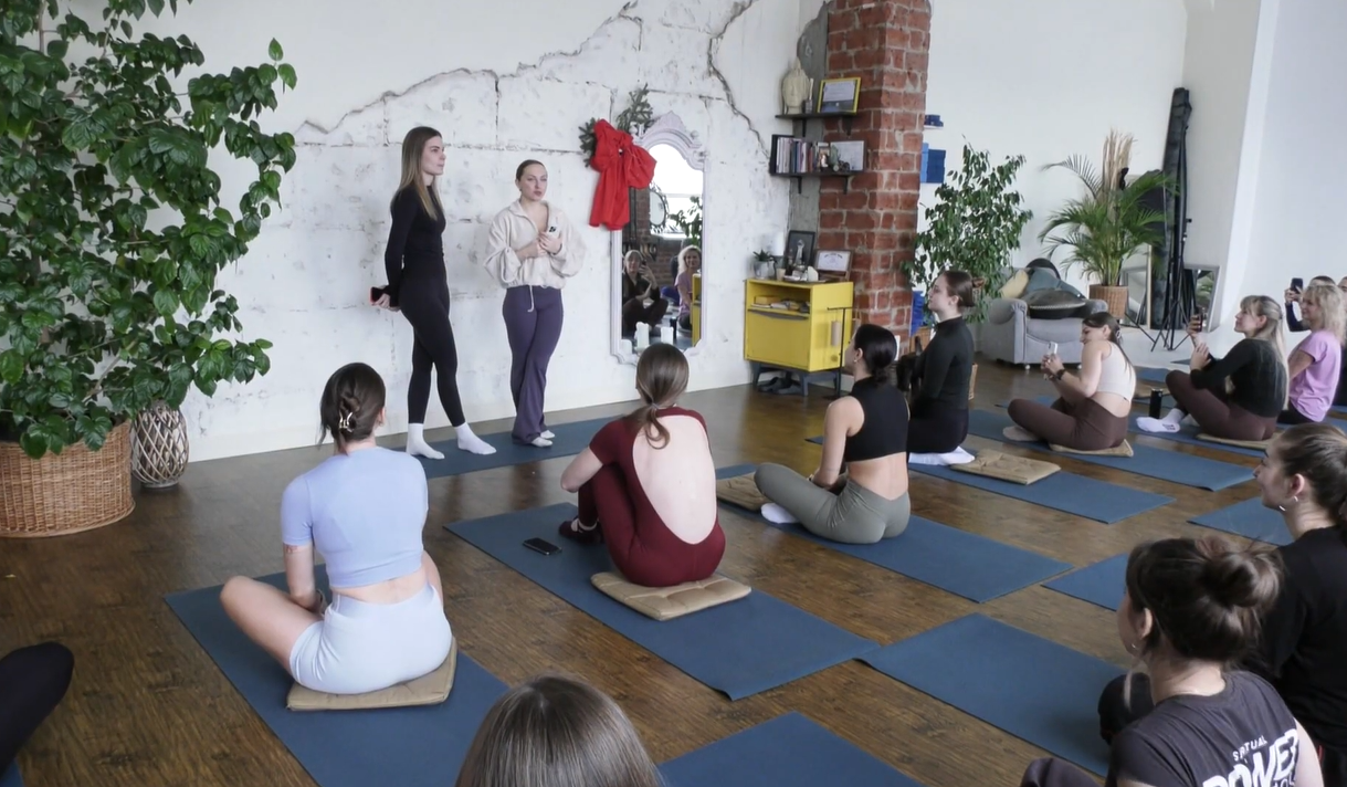 Практика відбувалася під живий музичний супровід, який допомагав учасникам зануритися в медитацію. Заняття проводила тренерка Дарія Полякова, яка проходила навчання в Індії. За її словами, місця на йогу закінчилися дуже швидко.